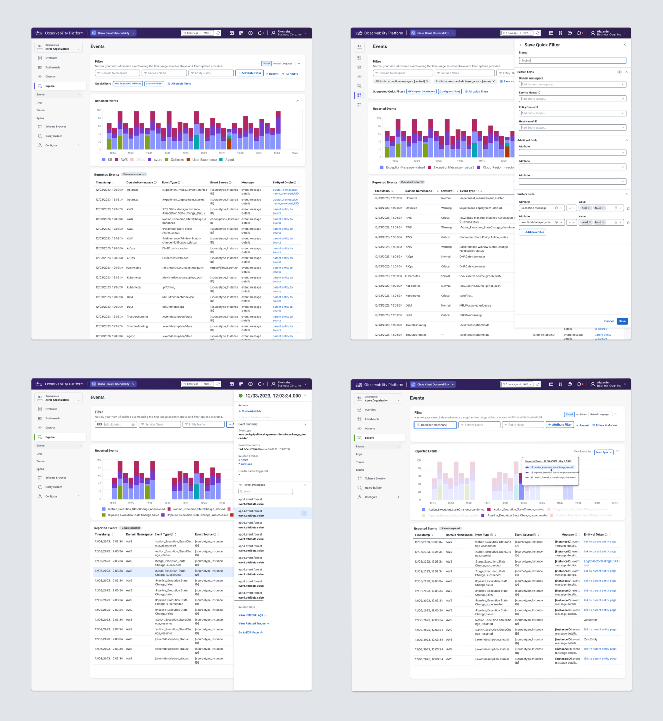 The Solution: I designed and delivered a unified Event Explorer that consolidated cross-domain Event investigation into a single, intelligent dashboard.